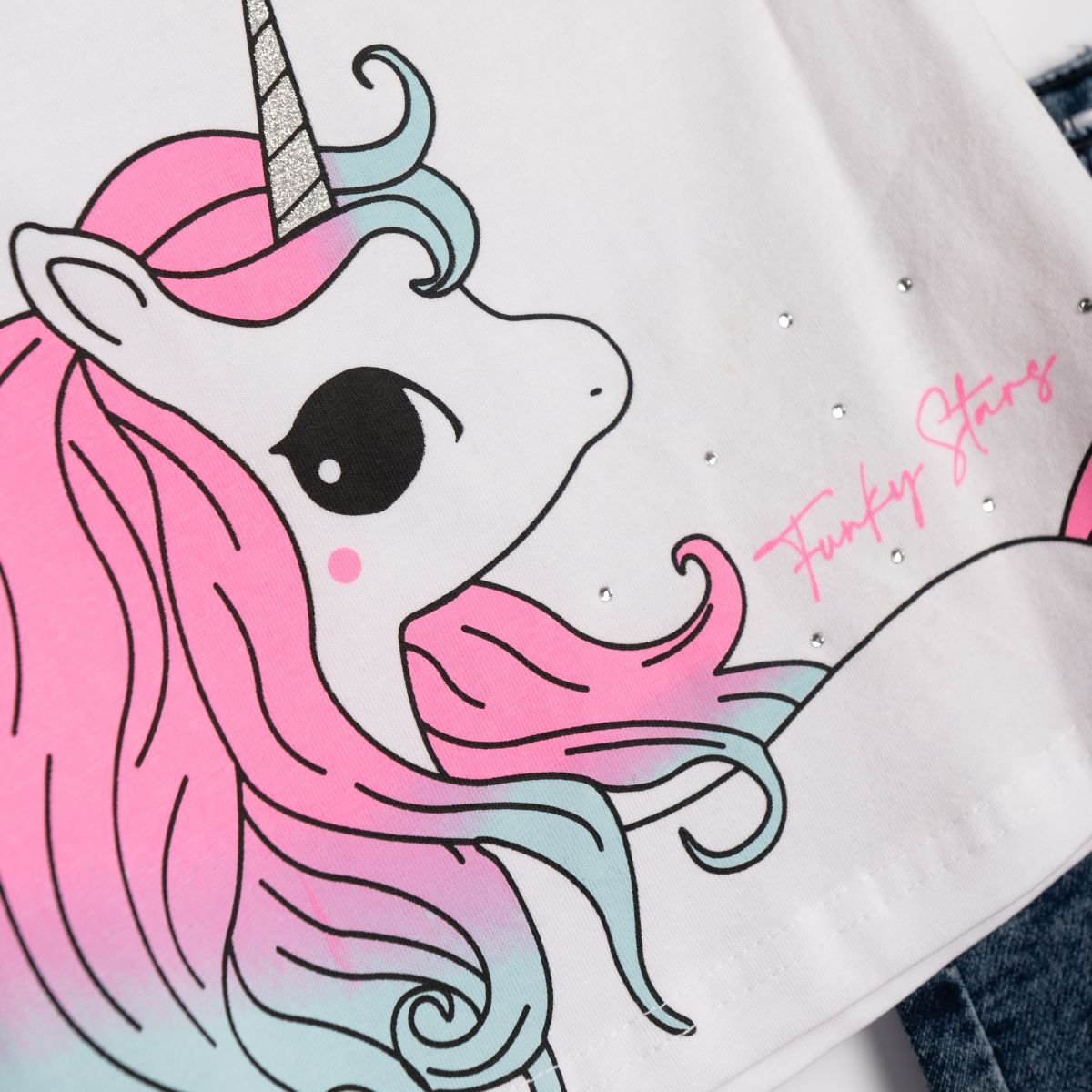 Σετ σορτς τζιν λυκρα για κοριτσι σε χρωμα λευκό μπλε τζιν.